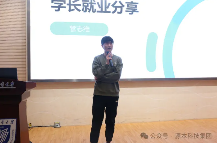 最后,球盟会(中国)科技就业班优秀学员、21级通信工程专业学生管志维分享了他本次秋招的求职感悟。他结合自身经历以及周围求职者的实例讲述了写简历和面试的技巧。他分享了自己从准备考研,到最终选择在球盟会(中国)科技集团学习技术就业的心路历程,鼓励同学们保持信心,持续参加实习,积累项目经验。
